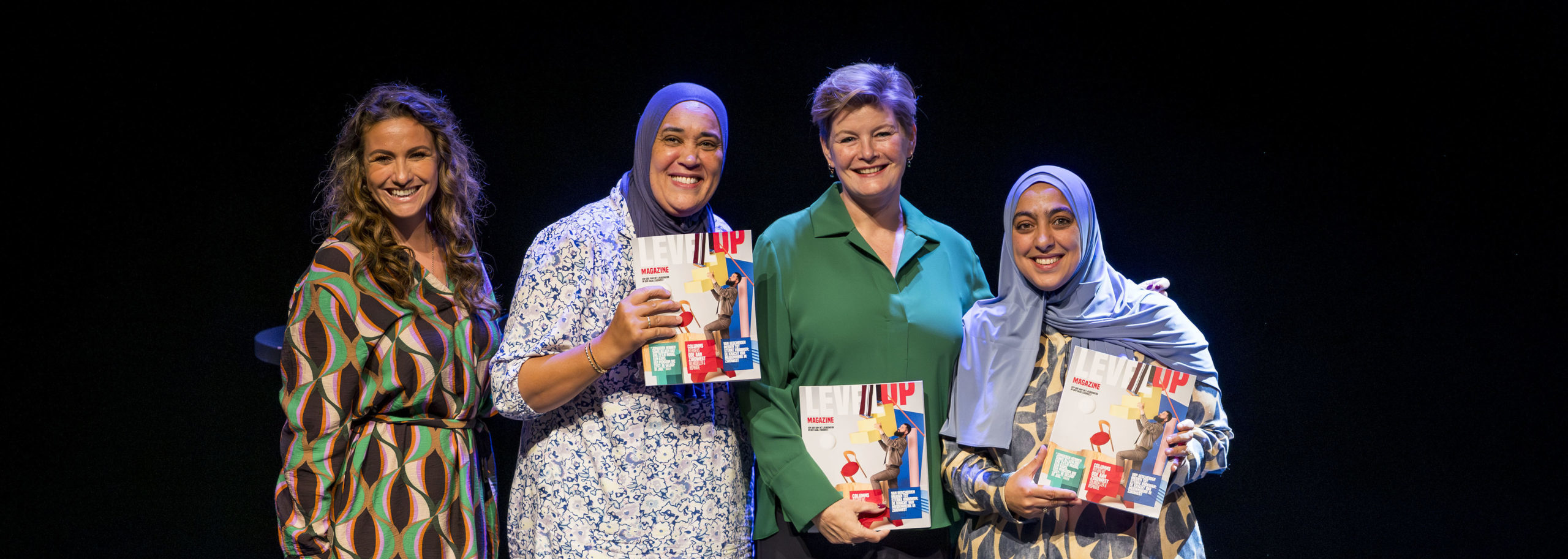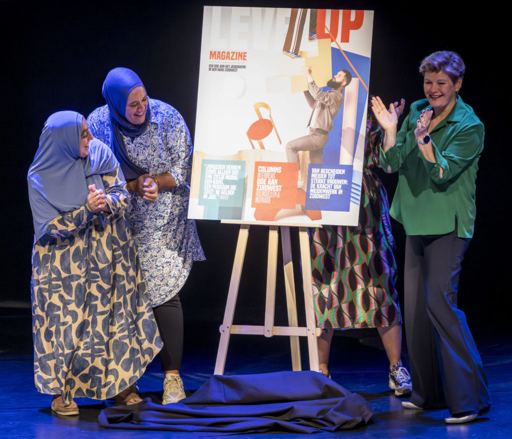 De Koninklijke Schouwburg was dinsdag 23 september het decor voor iedereen die zich inzet voor jongeren in Den Haag Zuidwest. Bijna 200 jeugdwerkers en andere professionals kwamen er samen om elkaar te inspireren en van elkaar te leren. Tijdens deze dag werden, uit handen van wethouder Mariëlle Vavier, ook de eerste exemplaren van het Level Up magazine uitgereikt aan meidenwerkers Amal en Nadia.